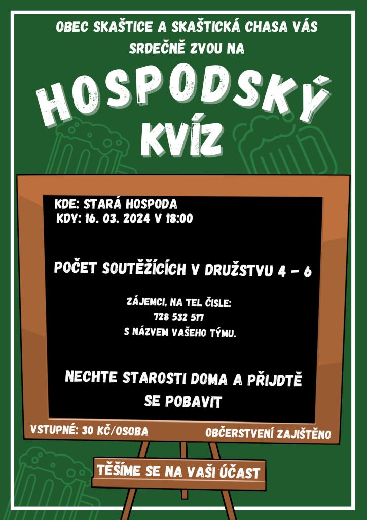 Obec Skaštice a Skaštická chasa vás srdečně zvou na Hospodský kvíz. Více informací v letáčku.