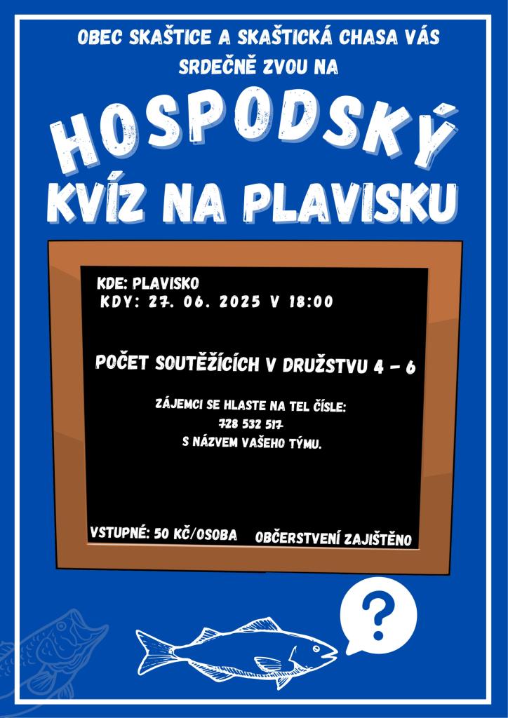Obec Skaštice a Skaštická chasa Vás srdečně zvou na hospodský kvíz, který se uskuteční 27. 6. 2025 od 18:00. Více informací na přiloženém letáčku.
