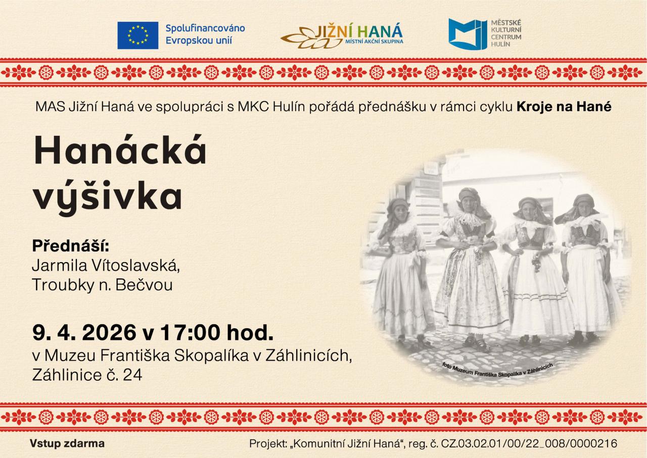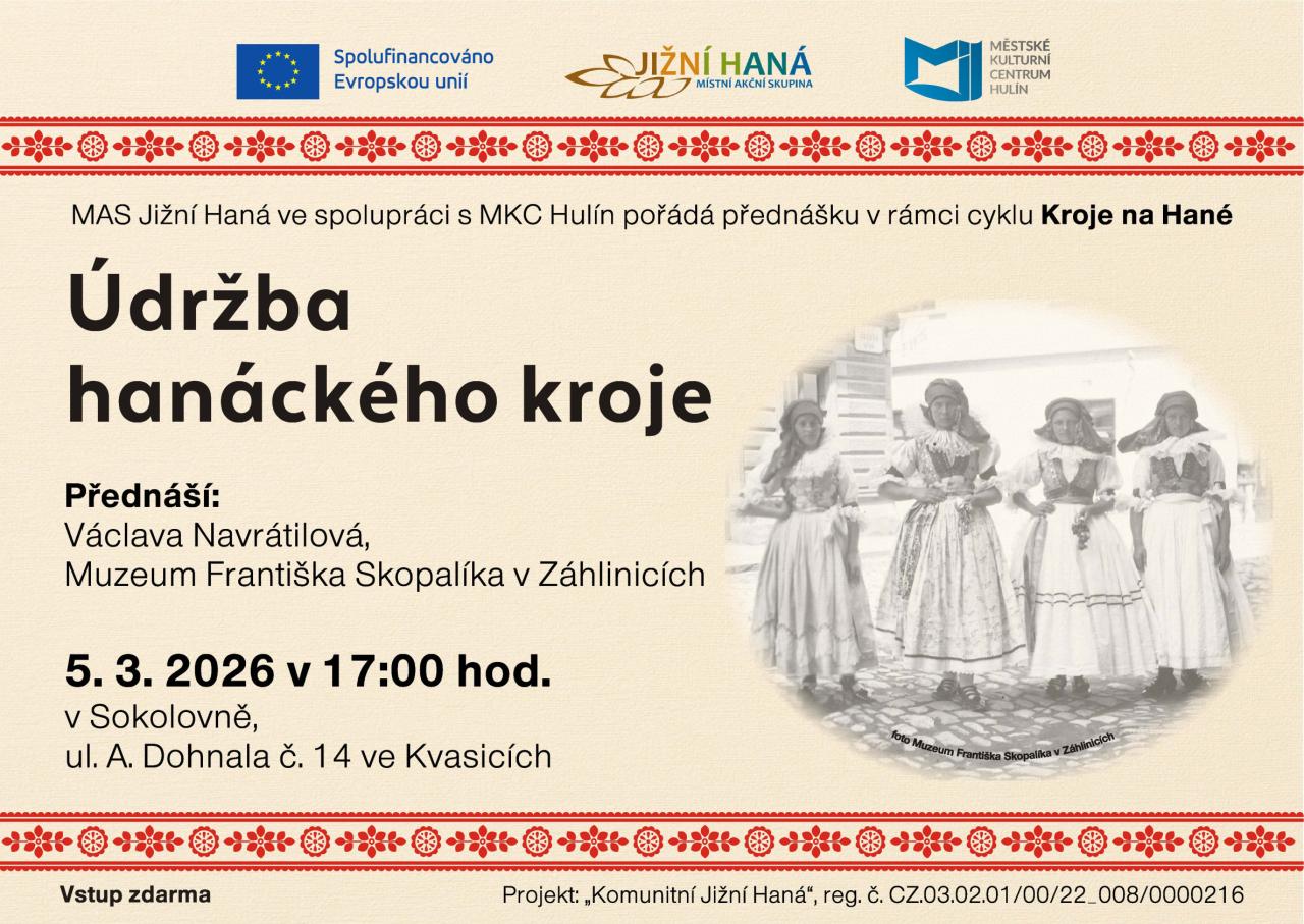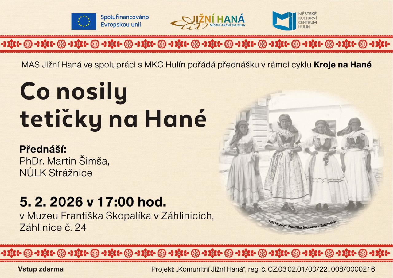MAS Jižní Haná ve spolupráci s MKC Hulín pořádá cyklus přednášek na téma Kroje na Hané. Na přiložených pozvánkách se dozvíte více.