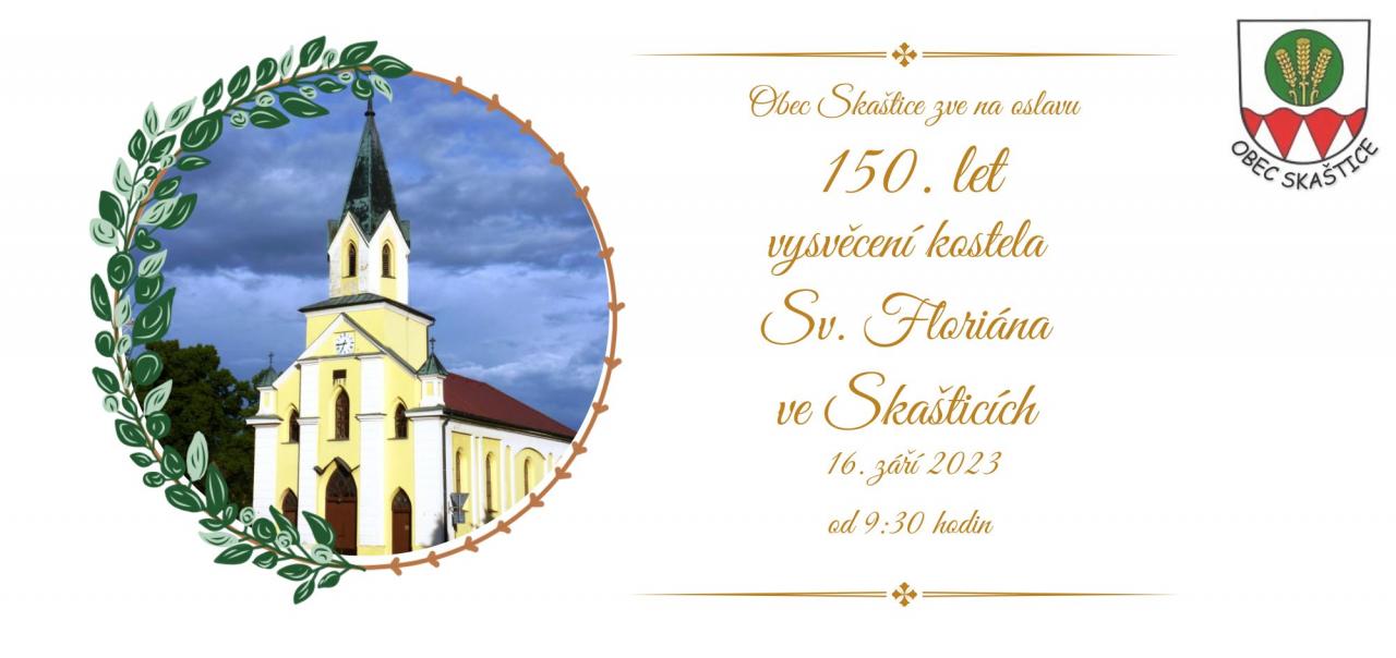 Obec Skaštice zve na oslavu 150. let vysvěcení kostela Sv. Floriána ve Skašticích. Více informací včetně podrobného programu na přiložené pozvánce.
